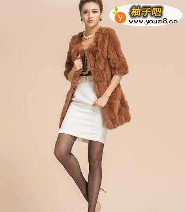 2浅棕色的皮草,内搭白色连衣裙,去party或者参加晚会都十分合适!颜色搭得很好看。