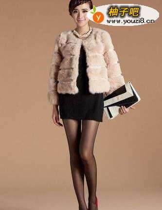 3白色的皮草雪白纯洁,用黑色来搭配就最有感觉!白色的钉珠衫,黑色的皮短裤,黑色鱼嘴高跟,性感妩媚!