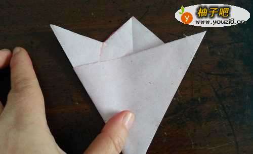 2把彩纸的两角对折,如图所示。