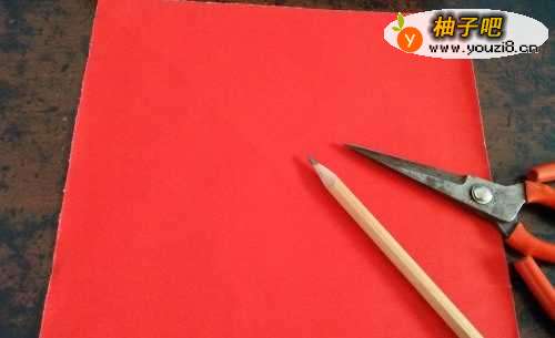 准备好剪纸工具,一张正方形彩纸,笔,剪刀。