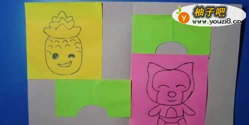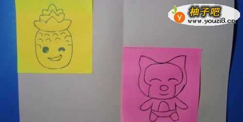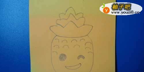 2在颜色卡纸上绘制一个可爱的菠萝。