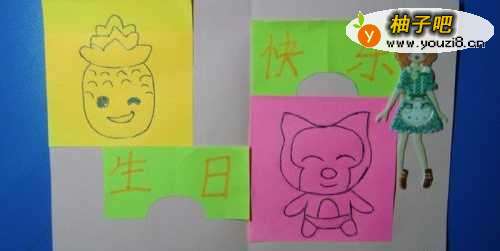 知道小朋友喜欢贴贴画,给其送一个可爱的贴贴人物做收藏,小朋友肯定喜欢,会觉得这是最好的生日贺卡。这样,一份精心制作的手工生日贺卡就做好了。