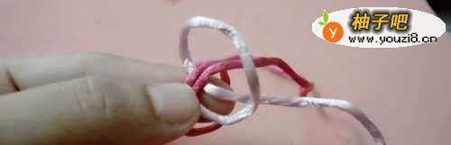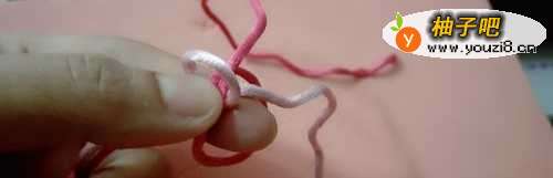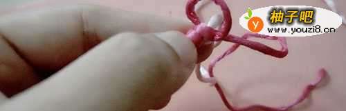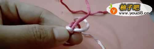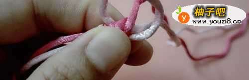 8把红色的线拉紧。粉色的线也形成了一个小圈。
