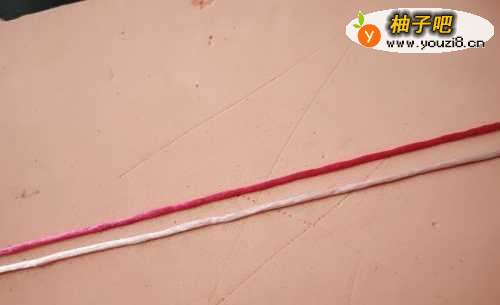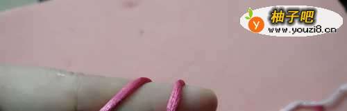10把红色线从手指绕一圈。然后是把粉色的线拉紧。