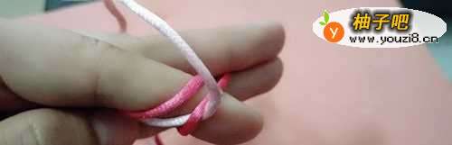 3然后再把粉色的线向上,在手指上绕一圈。