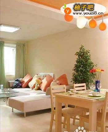 从餐厅看客厅,温馨的橙色,房间不大,一览无余。