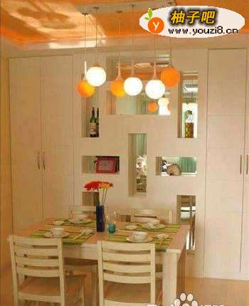 2餐厅边上设计了八宝阁的隔断,有很春意的餐厅。