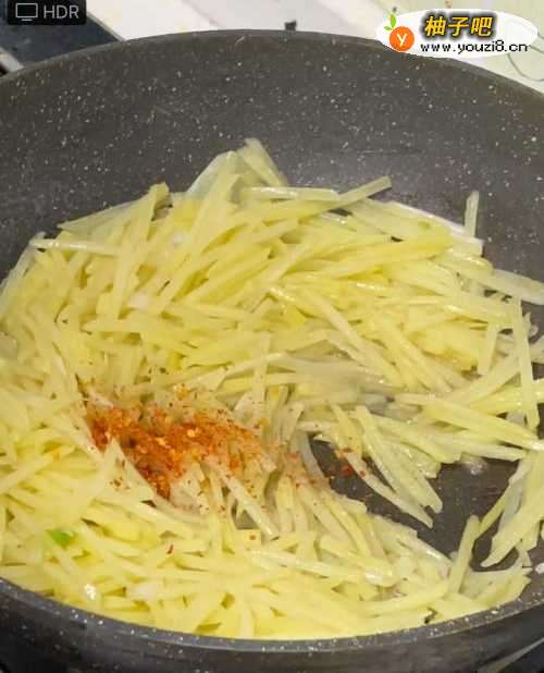 3加入少许香醋 保证土豆丝清脆的口感 翻炒