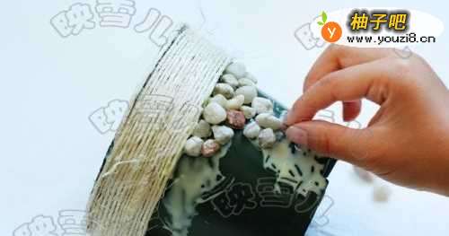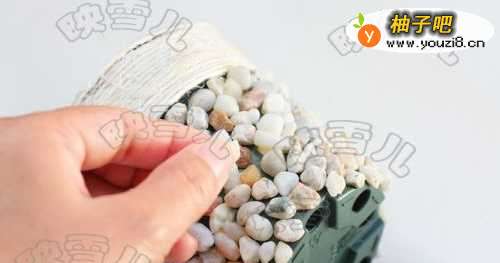 6最后等花盆干后,我们再用小石子做缝隙的粘补就完成了。
