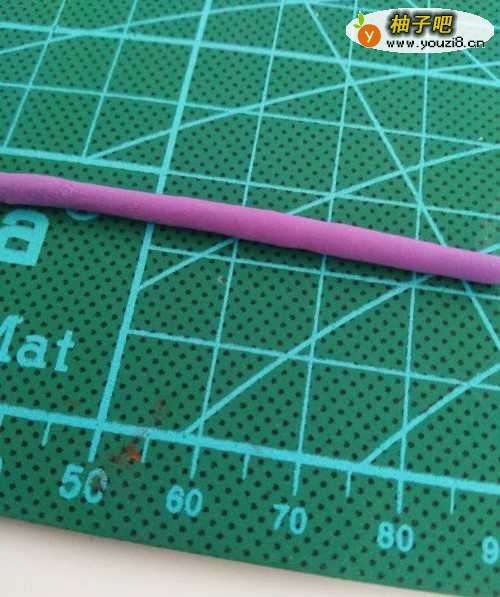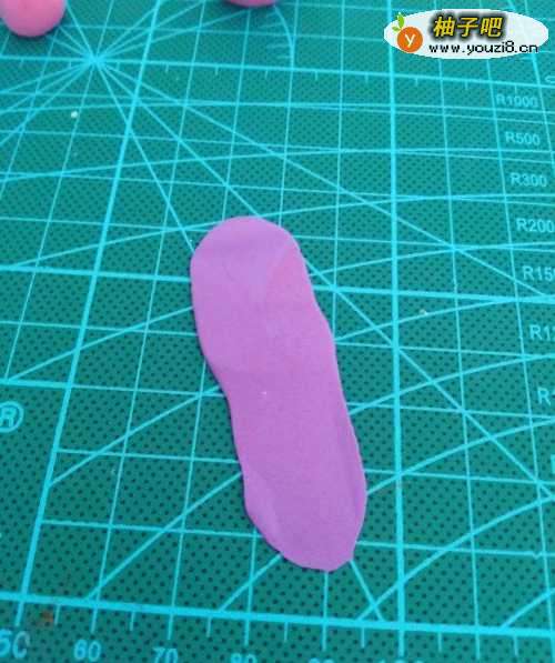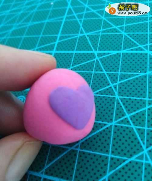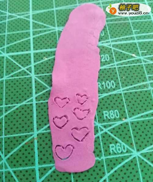 2深紫色粘土,压扁擀成片状,然后从上面剪下心形的片