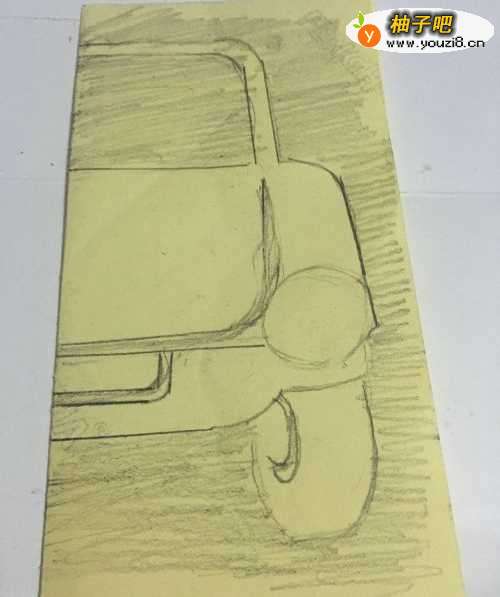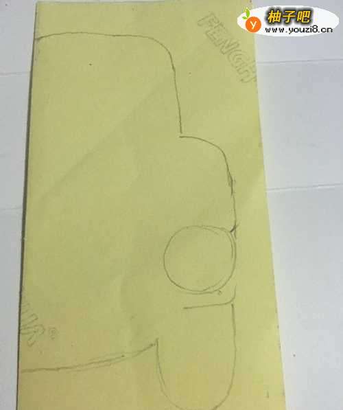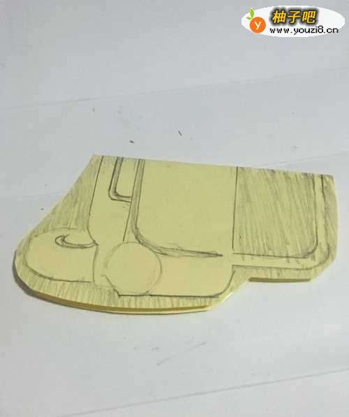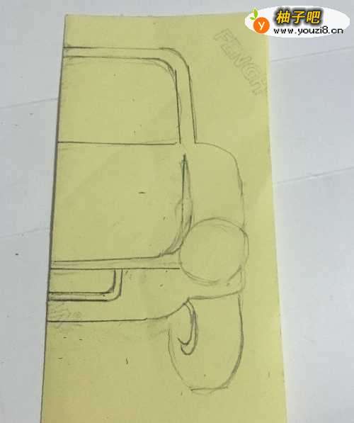 2第二步 折叠完之后 竖起来双边在左边 然后拿起绘图铅笔 画上小汽车的大体草图外线轮廓