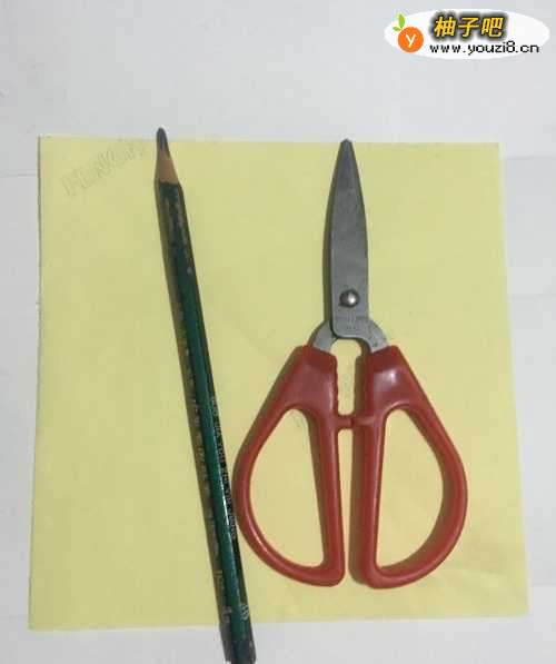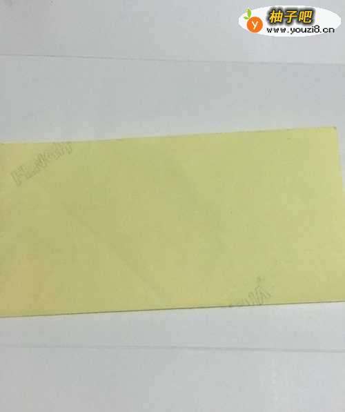 第一步 把一张16厘米X16厘米的正方形黄色彩纸 从下向上对边折叠整齐