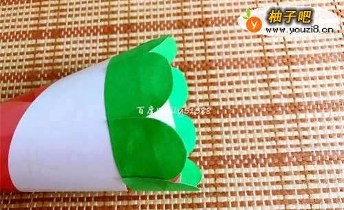 7将纸筒立起来,按照从下往上的顺序粘完即可。