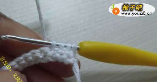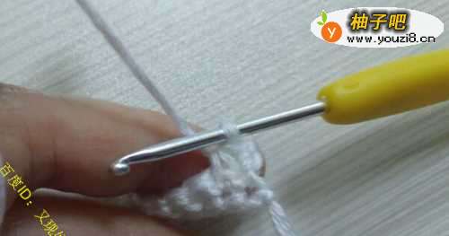2立一针,走这一行的起立针,然后在10和短针里依次钩织10个短针,做钩织收针的基础针法。