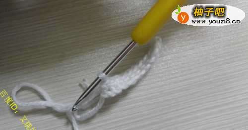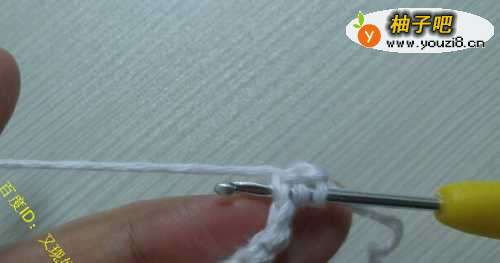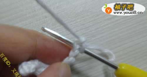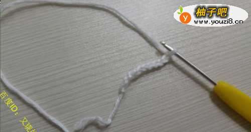 起针,首先我们先起针,将线打一个活结,然后将钩针伸进去,将活结稍稍拉紧,钩针挂线,拉10个辫子针,我以10个辫子针为例。
