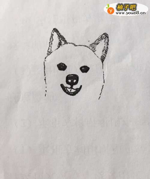 首先在白纸上用笔画出柴犬的头部轮廓,用笔画出柴犬耳朵边沿的毛发。在柴犬面部添加眼睛、鼻子和嘴巴。