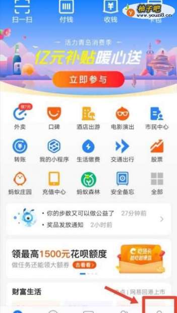 2进入支付宝的首页后,我们可以看到右下方有一个“我的”,我们点击进入。