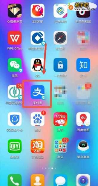 首先,在手机桌面上找到支付宝,点击进入。