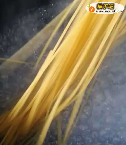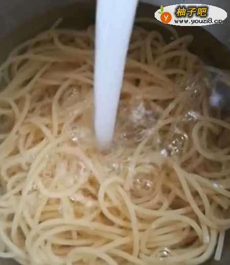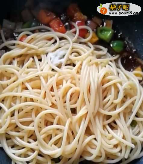 5放入适量的盐,再加入意面,翻炒均匀出锅即可。