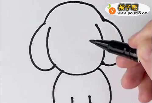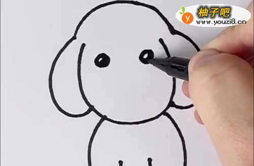 3随后我们就可以在小狗的脑袋下面画上小狗的身体。