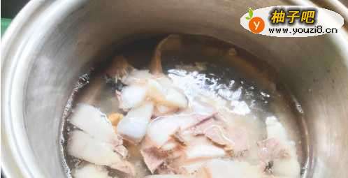 2将水煮肉,切成肉片放入锅中,大火煮开。