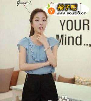 3荷叶边 服装 配上两侧皆有拉链的时髦 短裤 ,加之蓝与黑的色彩相互反衬,浓浓淑女风就此凸显! 仙,能诠释这种飘飘然的感觉,最好的单品莫过于薄纱裙了。简单的穿上一件小背心,就很出挑了。