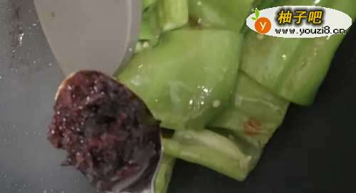 6加一勺牛肉酱翻炒,也可用新鲜肉沫代替