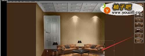 3从右边的材料库中找到我们的硅藻泥图片,点击鼠标拖动到墙面上,即可展现。