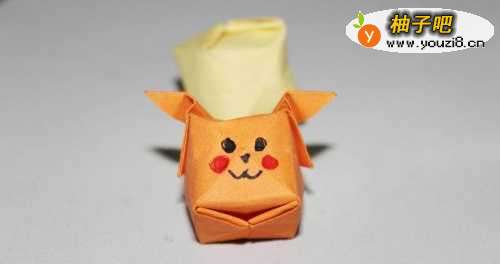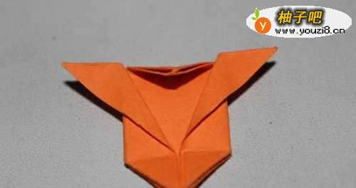 6然后如图做出两个耳朵,最后,把上角折下来即可。