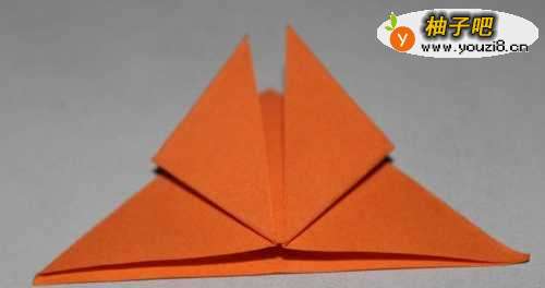 4第三步做完后,再把折出来的左右两个角分别向中心线对折。