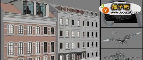 4对于背景下,我使用了一些参考cgtextures.com和快速建模的两栋楼,你可以看到在图04。在最终的图像中,您只能看到一小部分的建筑物,因为我改变了相机的焦距从25到50,这意味着背景是模糊的,因为它看起来原始参考图像中 的错误,帮助生活带来的图像。我希望让他们大,但不看丑陋和可怕的。我做了两种类型的错误,一个张开翅膀和其他封闭。的两个错误,第一个被人做了手脚,所以它可以提出或动画。然后,我创建了五个不同的bug,这意味着,我可以添加到图像,使细微的变化,如扭曲它们,使它们看起来独特。最后一步是添加一些运动模糊,这是使用的V-Ray物理相机,因为我觉得这看起来比它是在后期制作时, 你会看到在Fig.05,我使用Blendmat基地使用不同的材料。两种金属是一个黑色的金属覆盖的铁锈。