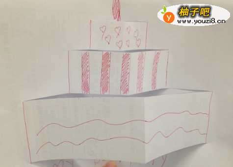 4如图,立体蛋糕就折出来了。