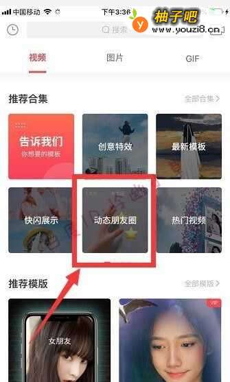 打开趣推软件,点击推荐合集中的“动态朋友圈”选项。