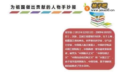 4在【为祖国做出贡献的人物手抄报】标题的下方右侧处,在框内写上字,如下图所示。
