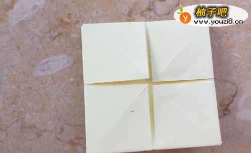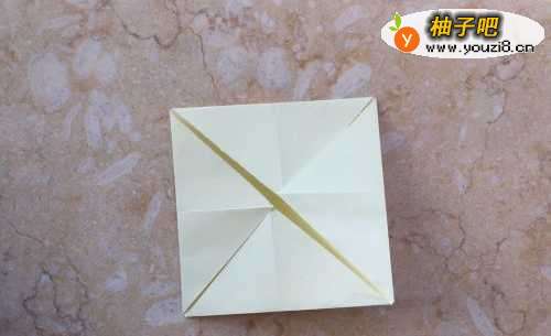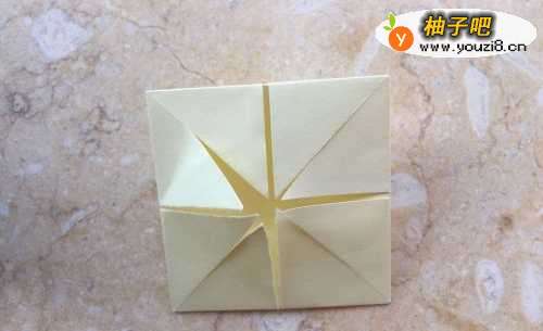 2然后我们再把正方形的四个角向中间点折叠起来