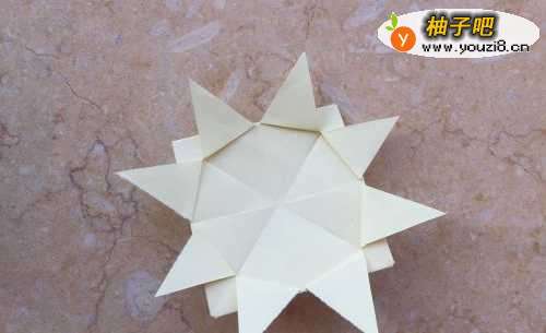 5我们再把剪开的三角形向外折叠起来形状花瓣