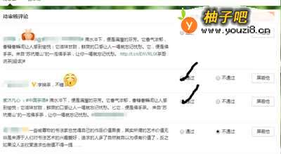 6打开后,可以看到待审核评论,然后逐条查看,如果不满意的评论,可以选择不通过。满意的可以选择通过,根据自己需要设置。