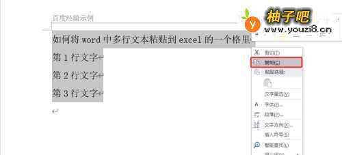 复制word中多行文本。