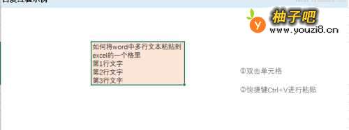如何将word中多行文本粘贴到excel的一个格里