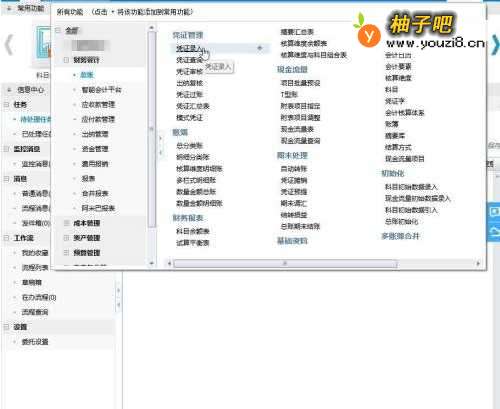 在主页面,点击【所有功能】→【财务会计】→【总账】→【凭证录入】。