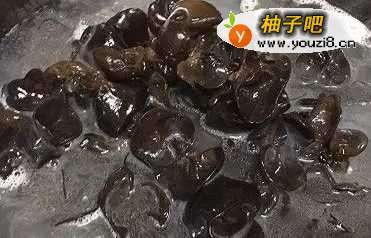 2把木耳洗净放锅里煮,注意是冷水下锅,待木耳熟了捞起。