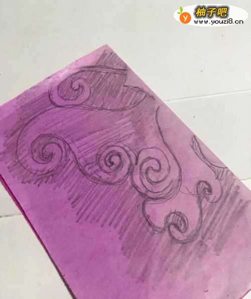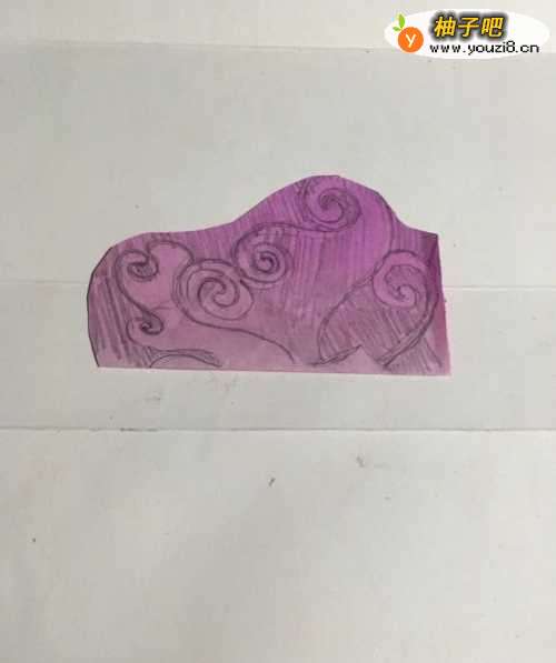 5第五步 把它涂实好之后 再用手工剪刀 剪去图案外面周围的多余的彩纸