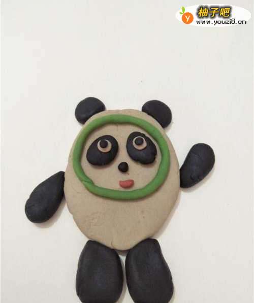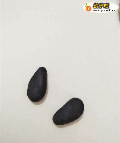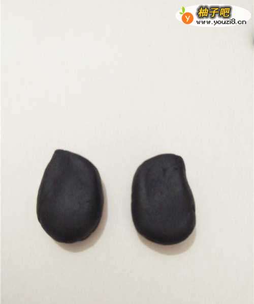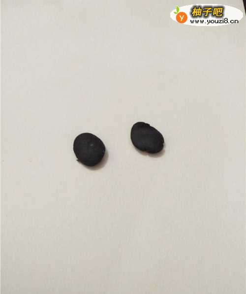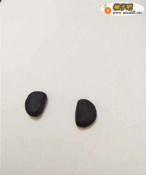 8用黑色捏两个半圆形,粘在身体上方,当作它的耳朵。