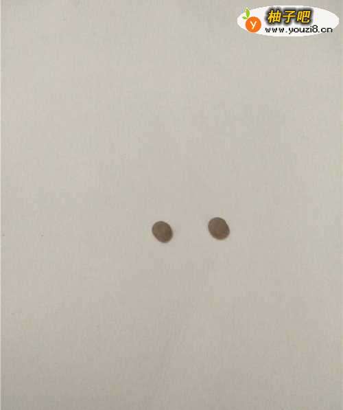 7再用黑色团两个小球,粘在白色眼睛上面,当作它的眼珠。