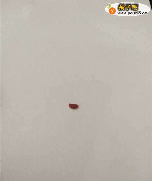 4用红色搓一个弯弯的小条,粘在鼻子下面,当作它的嘴。
