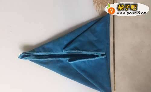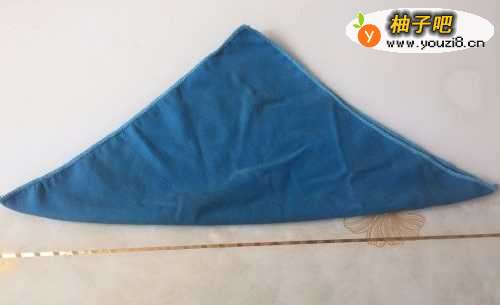 2将毛巾沿着对角线进行折叠,这样就成了一个三角形;