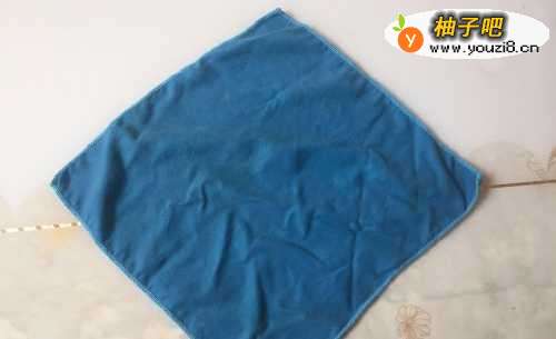 首先,准备一块正方形的毛巾,将其平整的放在桌面上;
