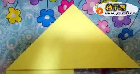 5之后我们将折上去的锐角,中间平分,边缘和锐角的边缘对齐,向外侧折叠,如图所示。