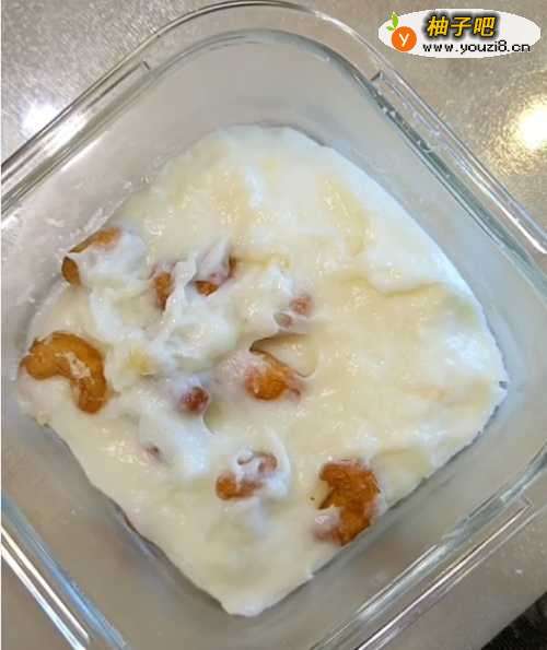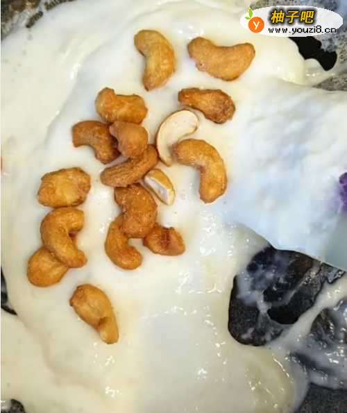 5然后撒上一些我们爱吃的坚果,这里我撒的腰果。