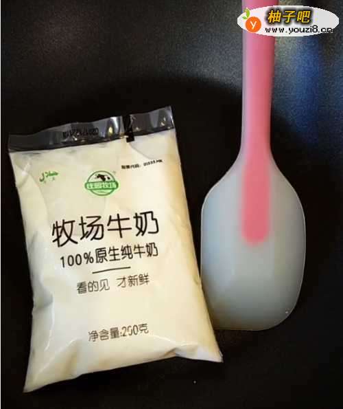首先我们准备一包纯牛奶,并且准备好汤匙。